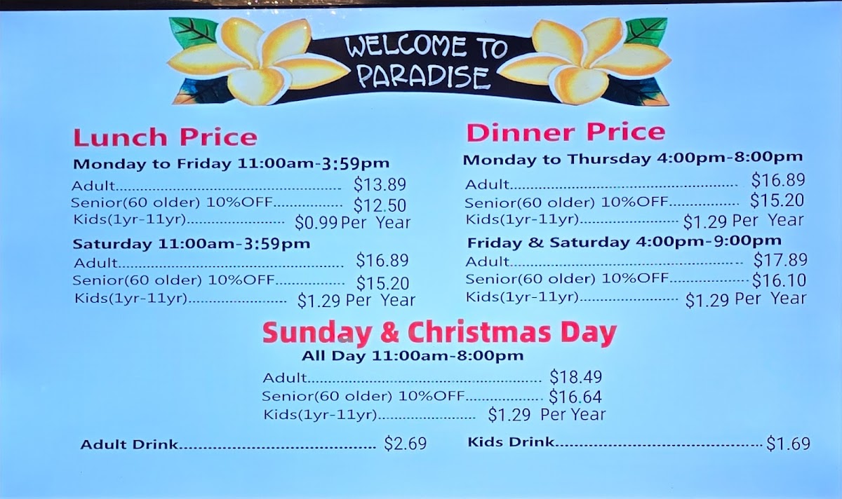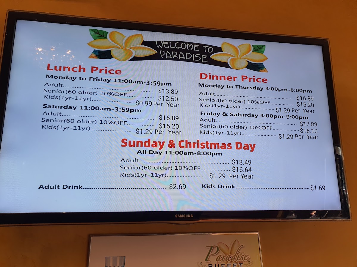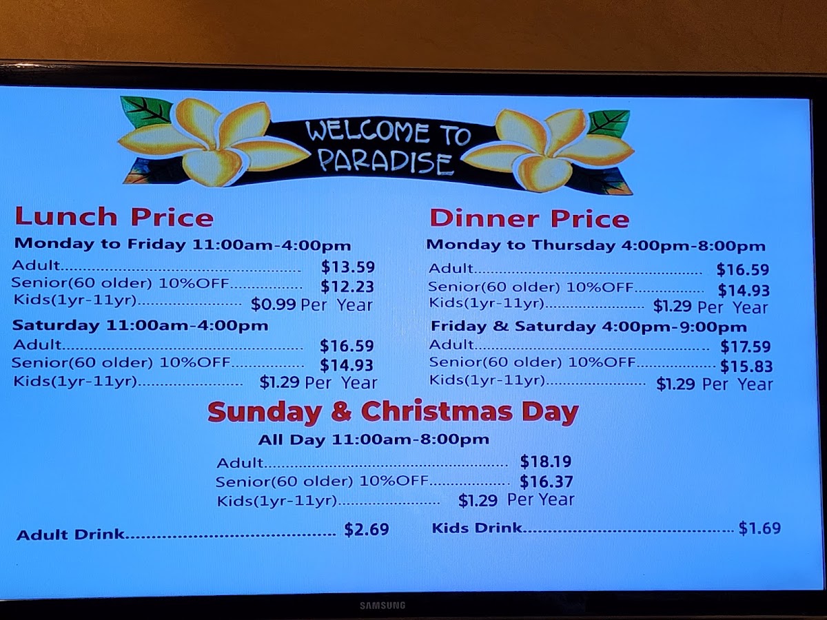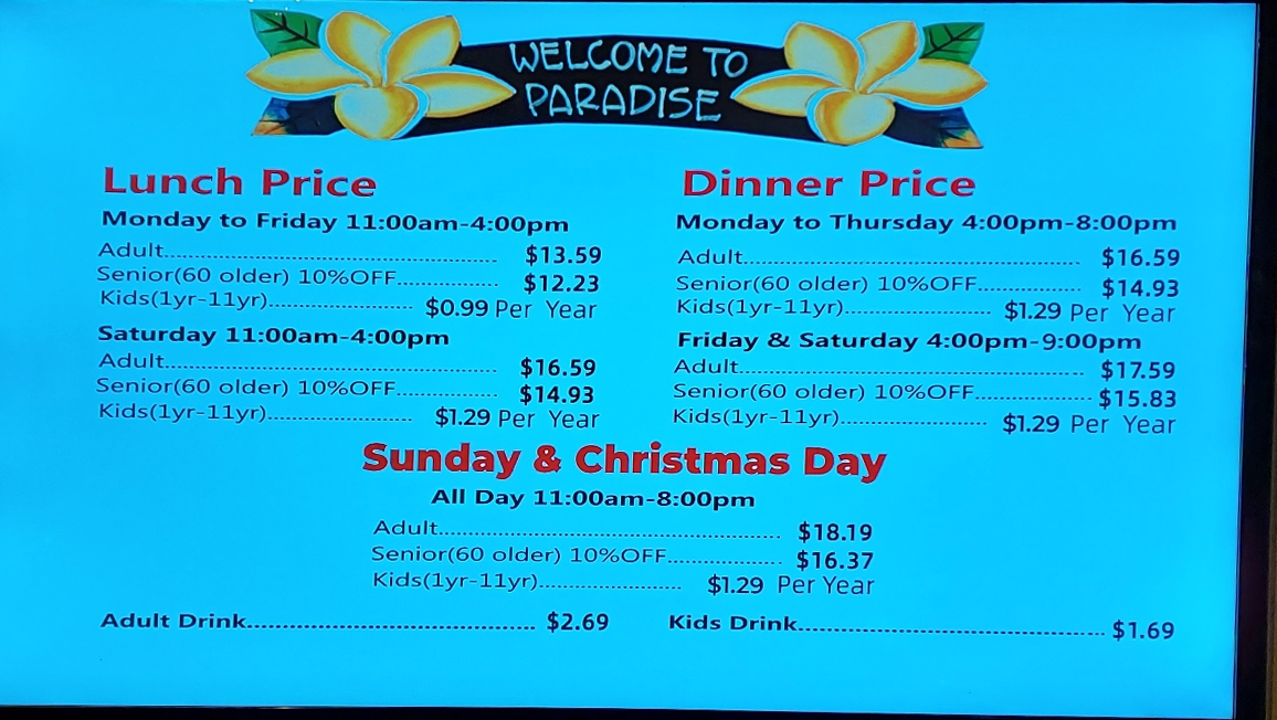 Paradise Buffet Menu