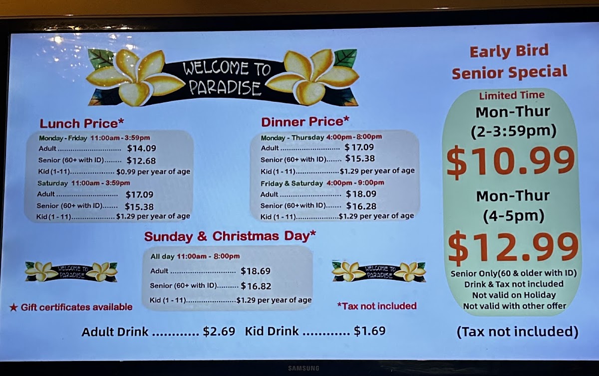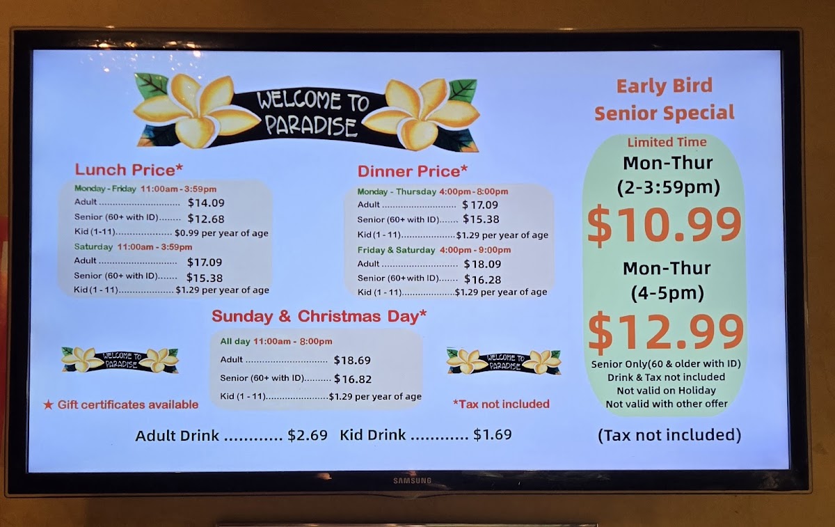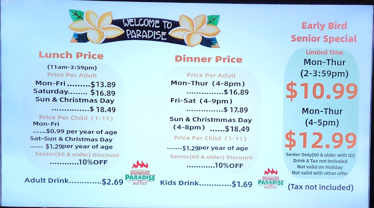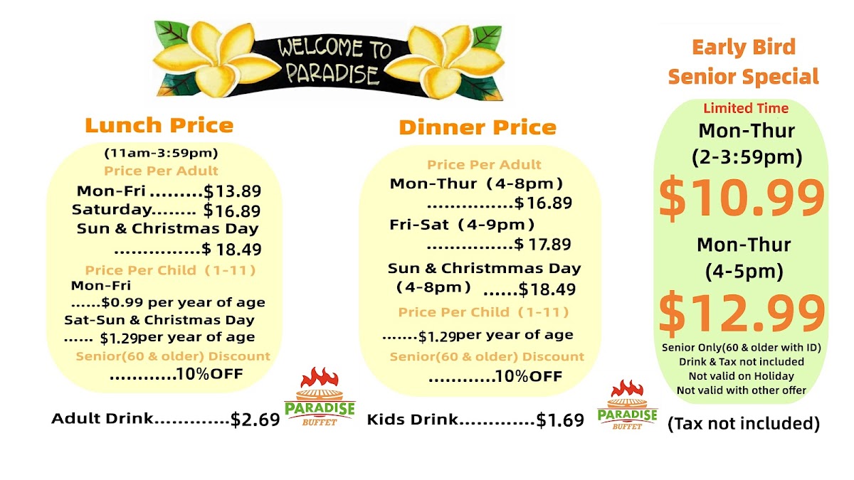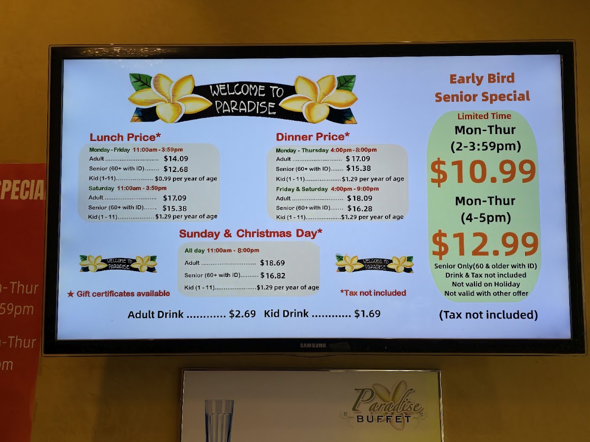 Paradise Buffet Menu